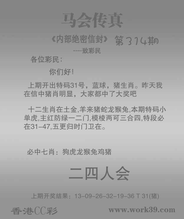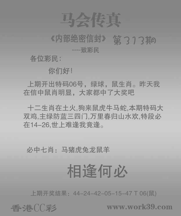 | 312期: ⑥肖 | 龙羊兔虎鸡牛 | 鼠06中 |