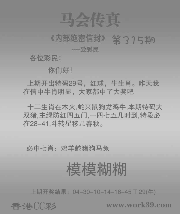 | 315期 | 牛 | 7尾 | 绿双 | 38-47 | 35羊 |