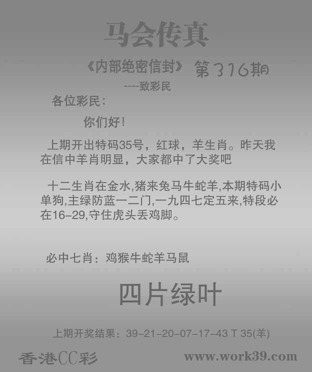 | 316期 | 猴 | 3尾 | 绿单 | 39-48 | 19猪 |