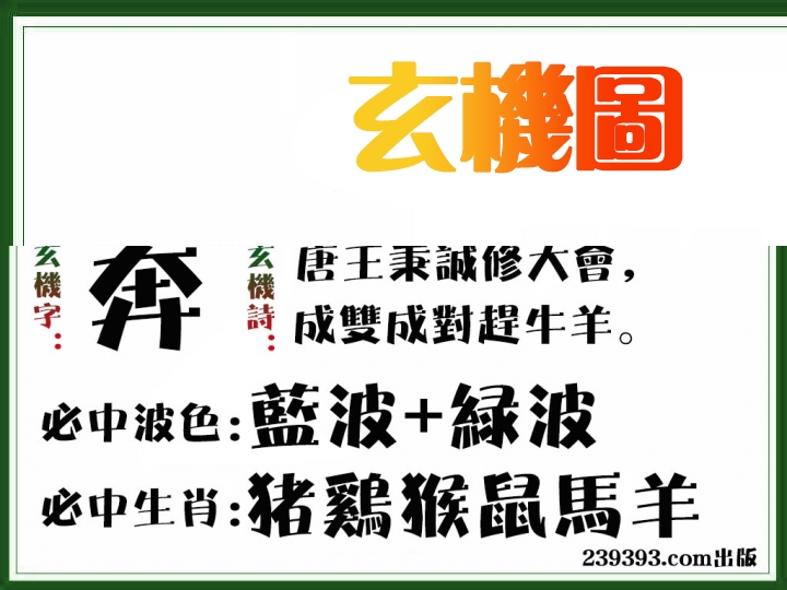 | 310期: ⑨肖 | 龙蛇鸡马狗猴鼠虎羊 | 羊23中 |