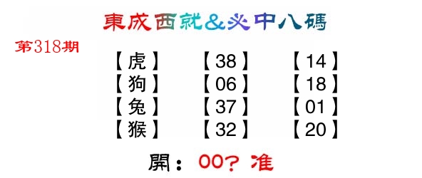 | 318期: ⑧肖 | 龙兔狗猪蛇鼠虎鸡 | ????中 |