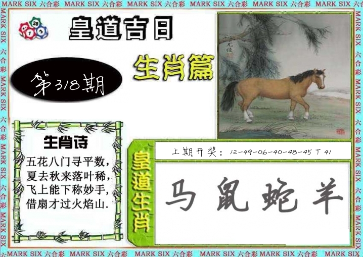 | 318期: ⑥肖 | 龙兔狗猪蛇鼠 | ????中 |