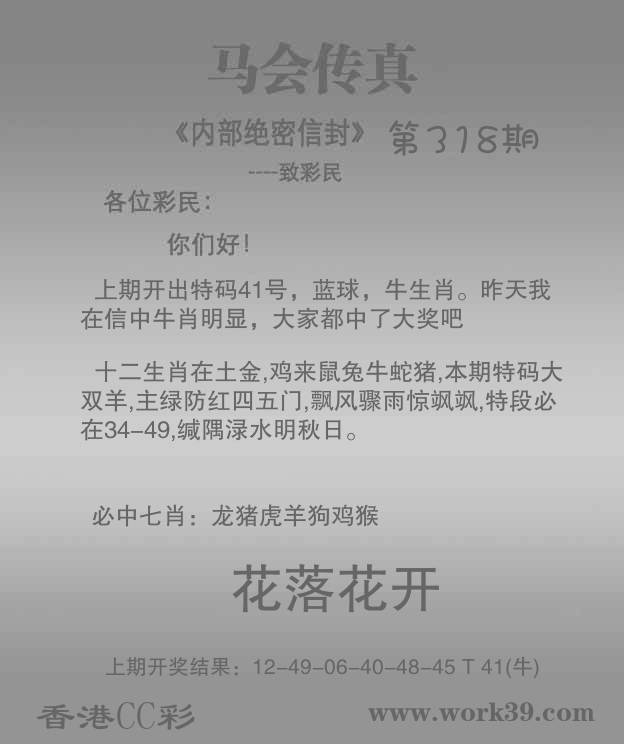 | 317期: ⑥肖 | 龙鼠鸡羊马蛇 | 牛41中 |