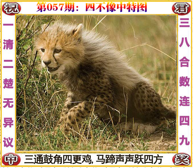 | 057期: ⑧肖 | 鸡猴兔猪虎蛇羊牛 | 马13中 |