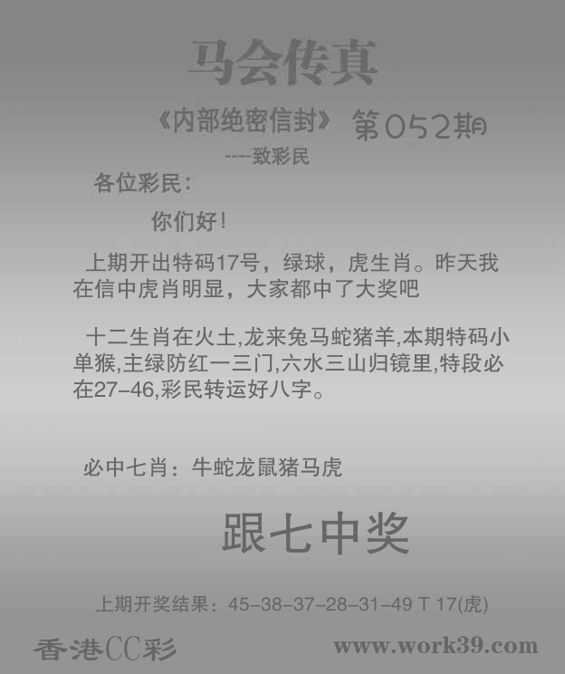 | 052期: ⑦肖 | 虎龙鼠羊猪兔猴 | 鸡10中 |