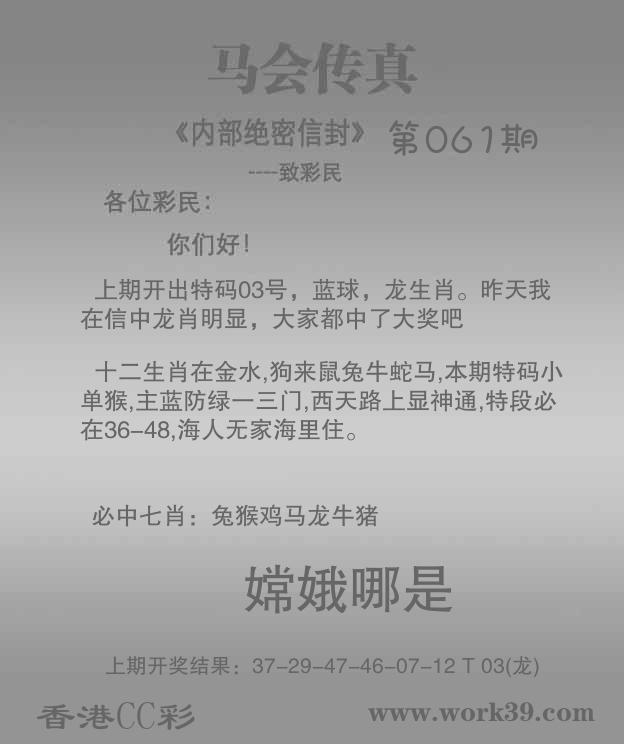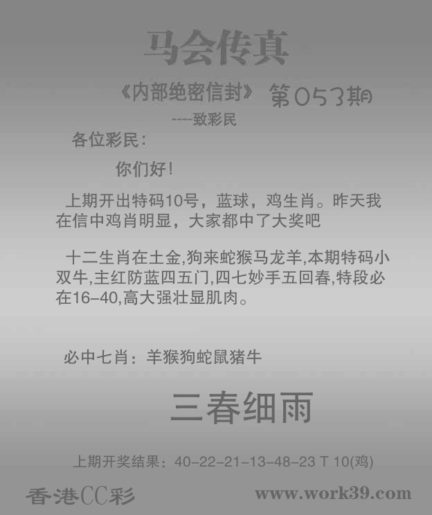 温馨提醒:论坛多说交流平台本着为彩民互动交流,但近段时间最近站长收到不少彩民投诉,不法份子借着多说交流平台,冒充高手将彩民骗进群里实行收费诈骗,请还没被骗的彩民谨慎,如果非要给骗子机会,本站皆不负责! 请大家多多支持香港CC彩www.work39.com