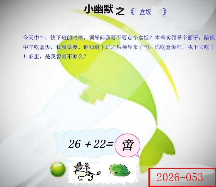 | 053期: ⑧肖 | 牛羊兔猴鸡虎鼠马 | 牛18中 |