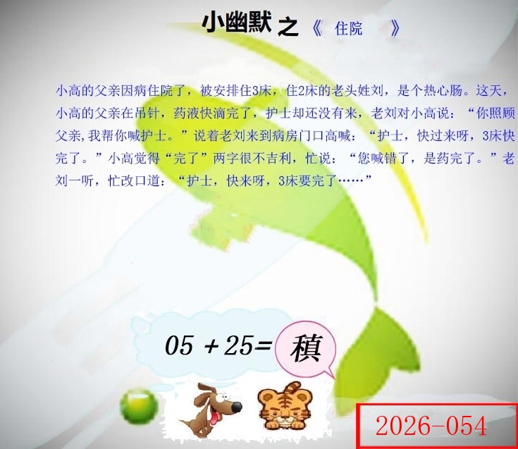 | 054期: ⑥肖 | 马蛇鸡狗虎猪 | 蛇26中 |