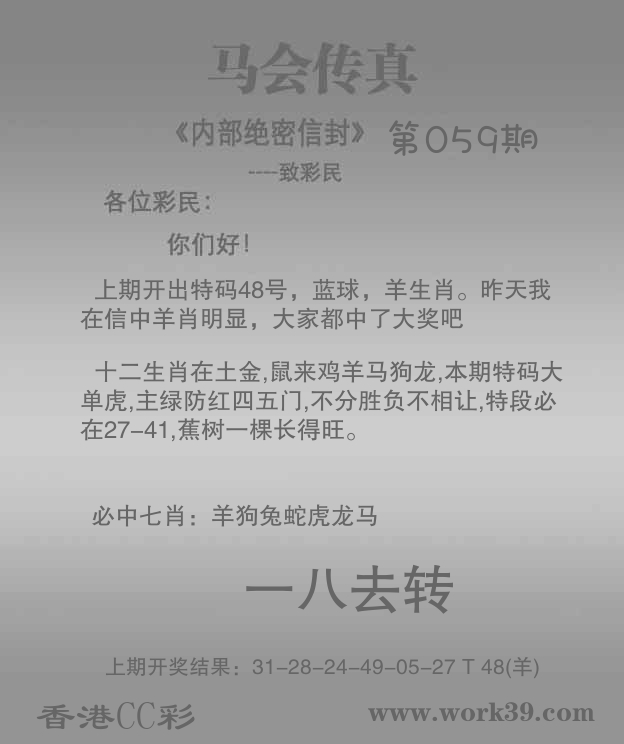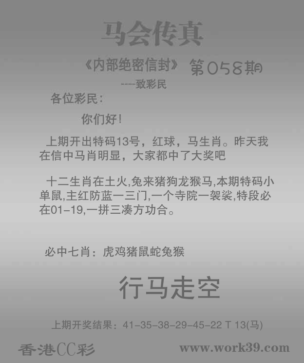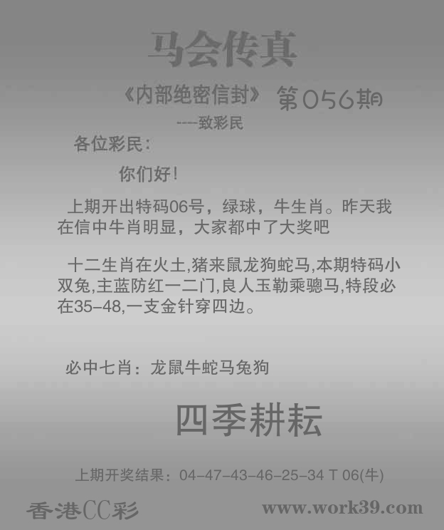 | 058期: ⑥肖 | 牛马鼠猪兔猴 | 羊48中 |