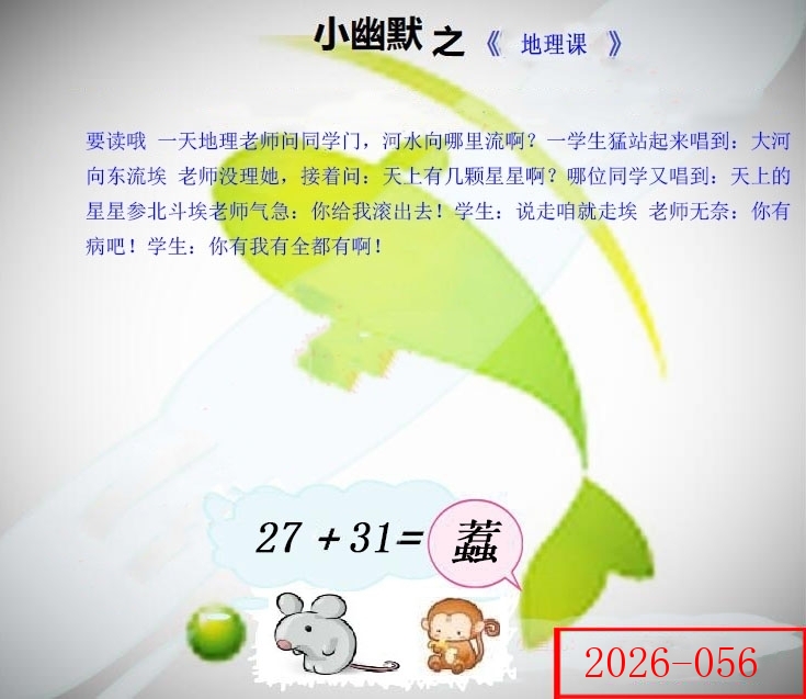 | 056期 | 猴 | 7尾 | 红单 | 01-10 | 40兔 |