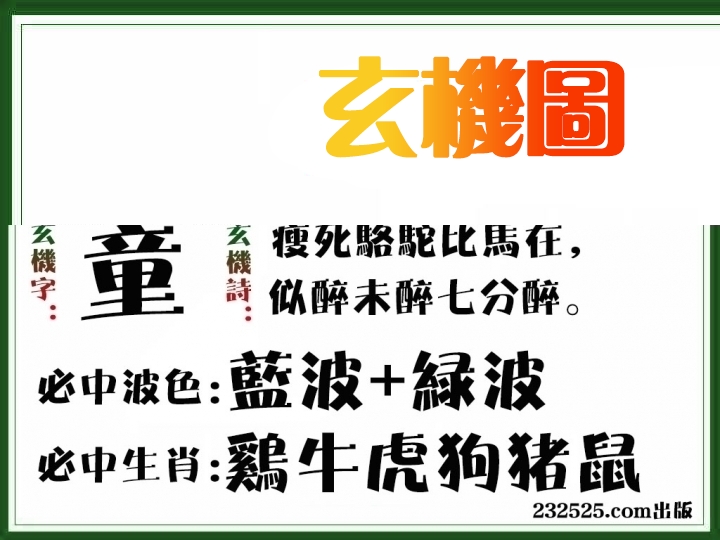 | 052期: ⑨肖 | 虎龙鼠羊猪兔猴蛇马 | 鸡10中 |