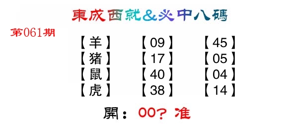 | 061期: ⑤肖 | 鼠牛马狗羊 | ????中 |