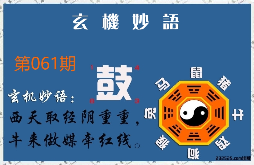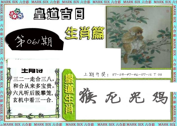 | 061期: ⑨肖 | 鼠牛马狗羊龙猪猴蛇 | ????中 |